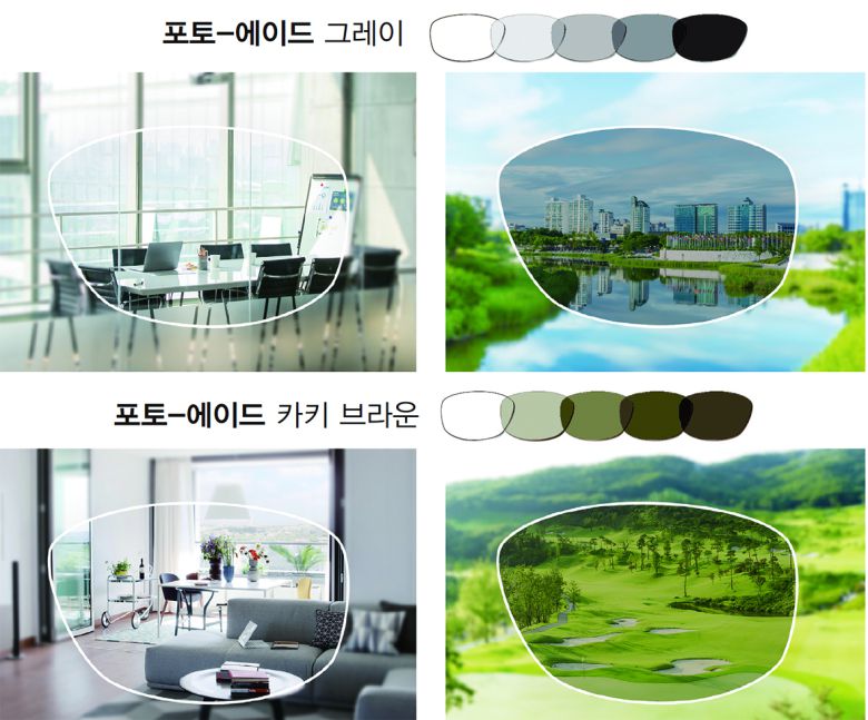실외에서는 선글라스처럼, 또 실내에 들어와서는 투명한 안경으로 빠르게 회귀되며 정확한 교정시력을 제공하는 것이 가장 큰 강점이다.
