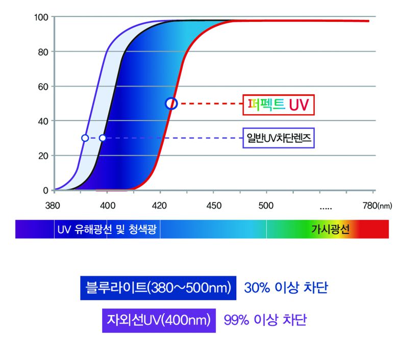 케미의 '퍼펙트 UV' 제품은 최첨단 특수소재를 사용해 자외선은 물론 블루라이트까지 차단된다. 렌즈가 투명하기 때문에 투과율이 높아 더욱 선명한 시야 확보가 가능하다. 특히 케미렌즈만의 독자적인 기술로 만들어진 '포그마킹' 정품 인증으로 안심하고 사용할 수 있다.