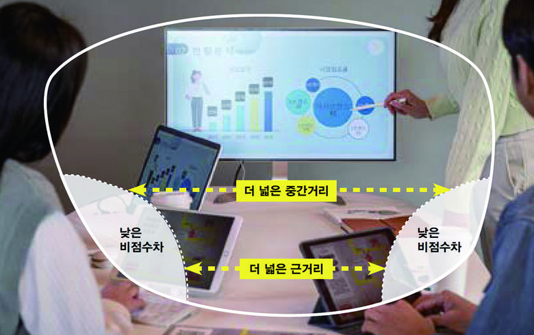 매직폼 어댑터는 일상생활에서 가장 많이 사용하게 되는 중간거리 시야가 넓어 컴퓨터 작업을 포함한 실내 업무에서 흐림 현상없이 적합한 시야를 제공하고 있다. 가정에서는 TV 시청 등 실내생활에서도 최적의 시야를 경험할 수 있다.