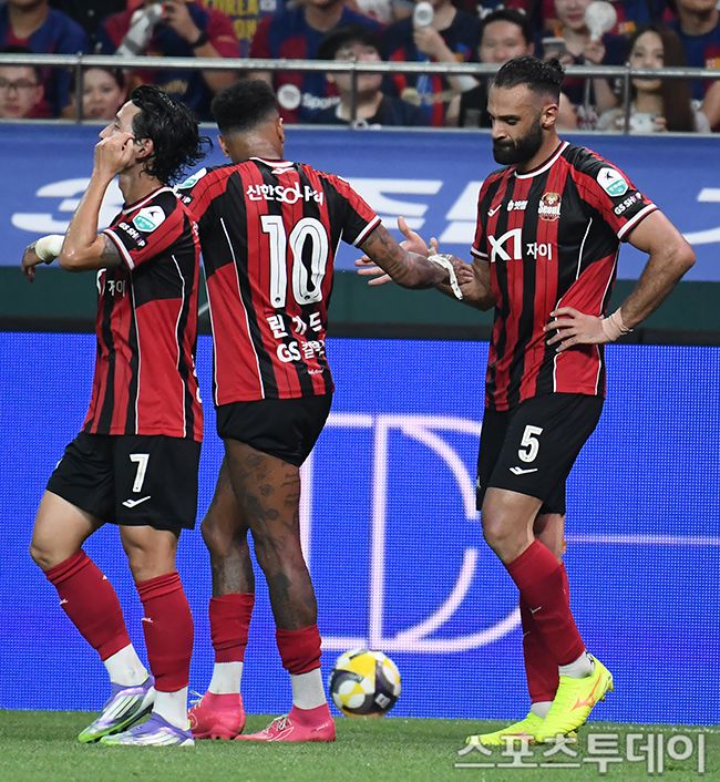 [스포츠투데이 팽현준 기자] 31일 서울월드컵경기장에서 열린 '2025 FC 바르셀로나 아시아 투어' FC서울과 FC바르셀로나의 경기, 서울 야잔 알 아랍이 골을 성공하고 있다. 2025.07.31.
