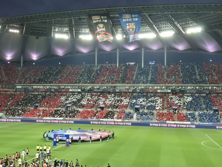 다만, 양팀 엠블럼이 들어간 두 종류로 부채가 준비됐는데, FC서울보다는 FC바르셀로나 팬들이 더 많았는지 일부 구역에서는 FC서울 엠블럼이 들어간 부채들만 남아있기도 했다.