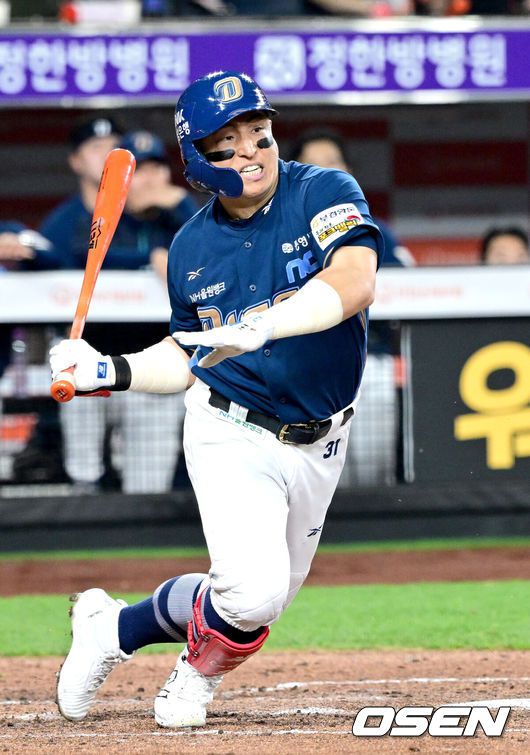 [OSEN=대전, 최규한 기자] 1회초 2사 주자없는 상황 NC 손아섭이 안타를 날리고 있다. 2025.04.18 / dreamer@osen.co.kr |