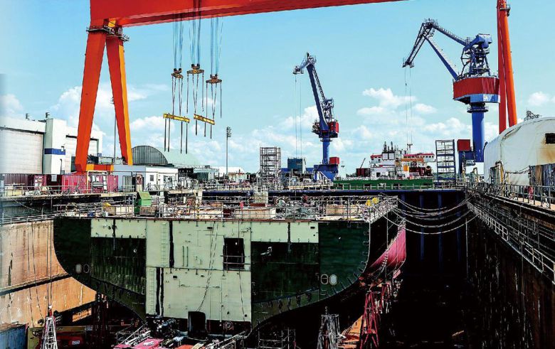 미국 필라델피아의 한화 필리조선소 모습. 한화그룹은 지난해 이 노후화된 조선소를 인수한 뒤 한국의 선진 기술을 접목해 첨단 조선소로 탈바꿈시키고 있다. 한화 필리조선소 제공 |