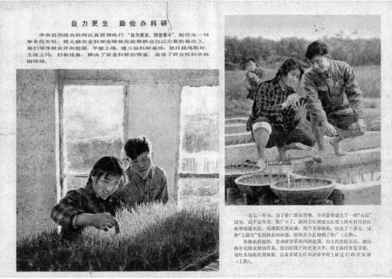 마오에게 농민계급보다 중요한 사회집단은 없었지만 녹색혁명을 이룰 만큼 경험이 많지 않았고, 사회 자체가 후진성을 면치 못했다. 마오는 “사회주의 신농촌”을 건설하기 위해 과학지식을 갖춘 “새로운 농민”을 길러내야 한다고 주장했다. 농민들이 과학자들과 긴밀하게 교류할 기회도 빈번해졌다. 하지만 결과는 모호했다. 오래된 기술을 이용할 것인가, 새로운 기술을 사용할 것인가를 두고 의견이 갈렸다. 비료 사용이 대표적이다. “농민의 비료-즉 유기비료-를 주력으로, 화학비료를 보조로 하자”는, 다소 애매한 정책이 전국적으로 시행되었다. 정책이 애매하다고 일하는 사람들마저 애매하지는 않았다. 각지에서 일한 지방 간부들과 기술원들은 “쉬지 않고 중국 전역을 휩쓸고 있던 보다 큰 혁명적 정치 운동의 파고 속에서 농업 근대화 정책을 집행”하는 데 이바지했다. 기술원들의 자부심은 비교적 높았다. “새로운 농업지식과 실천을 원활하게 전파하기 위해 연구 중심 대학을 떠나 농촌의 일선 기지에서 활동”한 이들은 녹색혁명과 함께 적색혁명의 당위를 중국 전역으로 전파하는 구심점이었다.