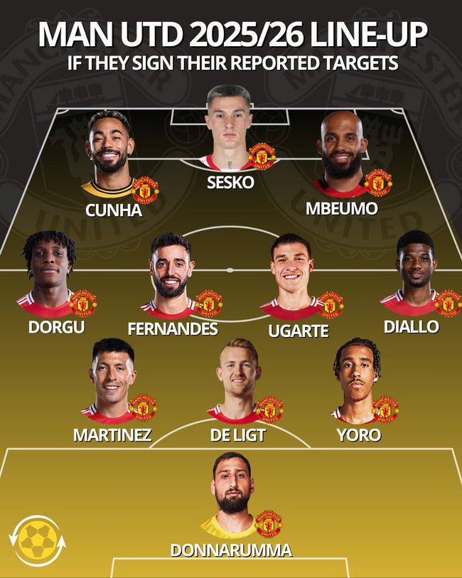 공격력 최상! 맨유의 2025-26시즌 예상 선발 라인업...'세스코-쿠냐-음뵈모' 조합
