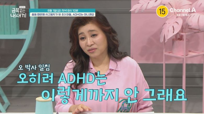 1일 저녁 8시 10분 채널A '요즘 육아 – 금쪽같은 내새끼'에서는 '충동 때문에 사고뭉치가 된 초3 아들, ADHD는 아니래요'의 사연이 공개된다.