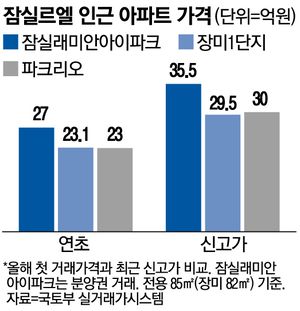 잠실르엘 일대 집값은 올해 들어서만 수억 원의 상승세를 보였다. 전용 84㎡ 기준 잠실래미안아이파크는 연초 27억원에 거래되던 분양권이 지난 6월에는 35억원대까지 올랐다. 파크리오 동일 평형 거래가도 연초 23억원에서 최근에는 30억원을 돌파했다. 장미1단지 전용 82㎡ 역시 연초 23억원대에서 최근 29억5000만원에 손바뀜하며 신고가를 경신했다.