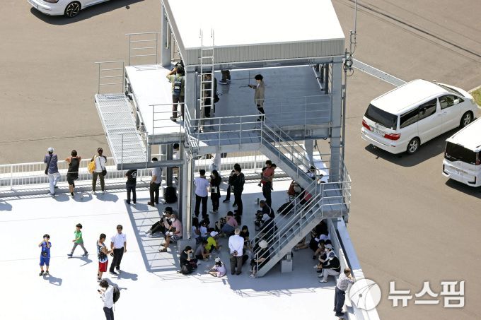 30일 일본 태평양 연안 지역에 쓰나미 경보가 발령된 가운데 홋카이도 무카와초에서 사람들이 쓰나미 대피 시설에 피신해 있다. [사진=로이터 뉴스핌] |
