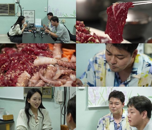 이날 ‘전남 한우의 메카’ 함평에 뜬 세 사람은 옛 감성이 물씬 풍기는 45년 전통의 ‘한우집’에서 간장 육회, 우낙 돌솥 비빔밥, 한우 찐 생비 등 특별한 음식들을 즐긴다. 그러던 중, 전현무는 원진아에게 “데뷔 초에 목소리가 너무 중저음이라고 지적 받았다던데?”라고 조심스레 묻는다. 원진아는 “맞다. 제가 목소리 음역대가 넓다. 신인 때 ‘주인공 할 거 아니면 목소리 바꾸라’는 말도 들었다. 그 이유가…”라며 당시의 상황을 설명해 모두를 놀라게 한다.