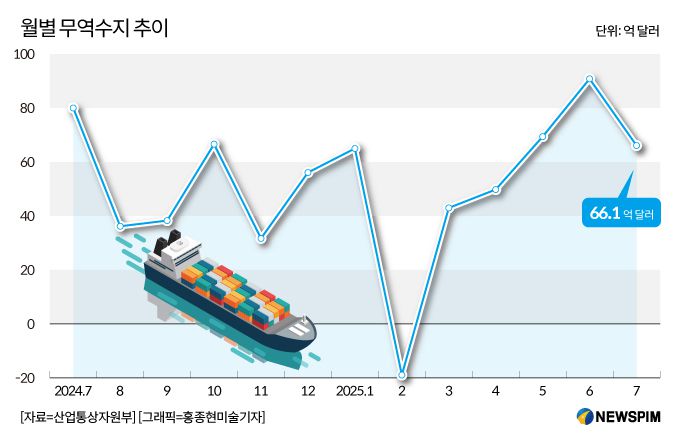 ◆ 7월 무역흑자 66.1억달러…7년 만에 최대