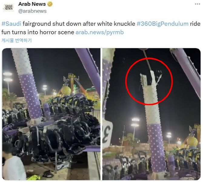 이 사고는 지난 7월 30일 사우디아라비아 제다 인근의 타이프의 알 하다 지역의 놀이공원에서 발생했다고 사우디 국영 언론 아랍뉴스는 전했다.