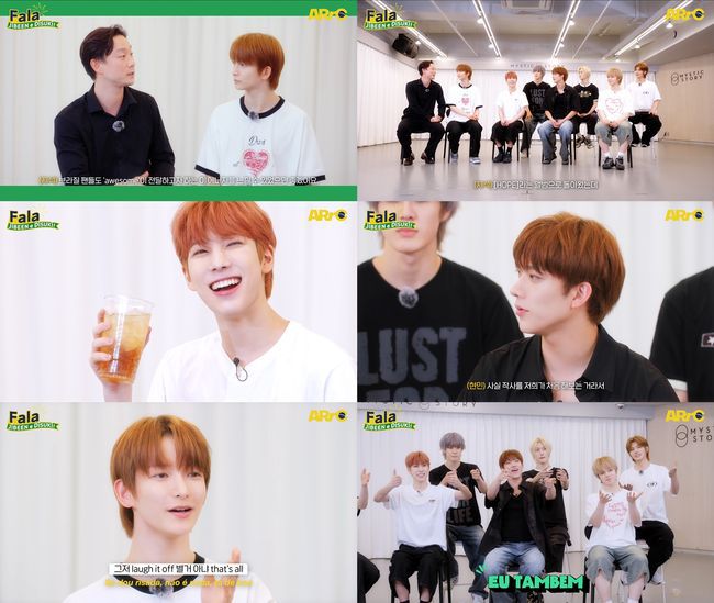 아크(앤디, 최한, 도하, 현민, 지빈, 끼엔, 리오토)는 지난 29일 공식 유튜브 채널을 통해 멤버 지빈의 친형이자 크리에이터인 지석과 함께한 자체 콘텐츠 'Fala JIBEEN e Disuki!'를 공개했다.