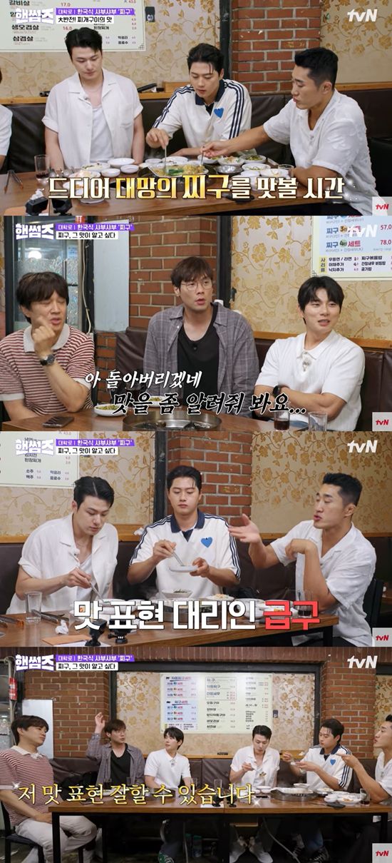 김동현, 오상욱, 신승호가 찌구를 맛있게 먹는 모습을 지켜본 최다니엘은 "무슨 맛일까? 진짜 너무 궁금하다. 너무 먹어보고 싶다. 왜 이렇게 (맛) 설명을 못하냐"라며 찌구 맛을 궁금해했다.