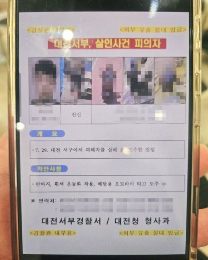 [대전=뉴스핌] 오종원 기자 = 대전 괴정동에서 발생한 교제 살인 사건 피의자의 신상정보가 담긴 수사 전단 자료가 온라인상에 게시돼 경찰이 유출 경로를 조사 중이다.