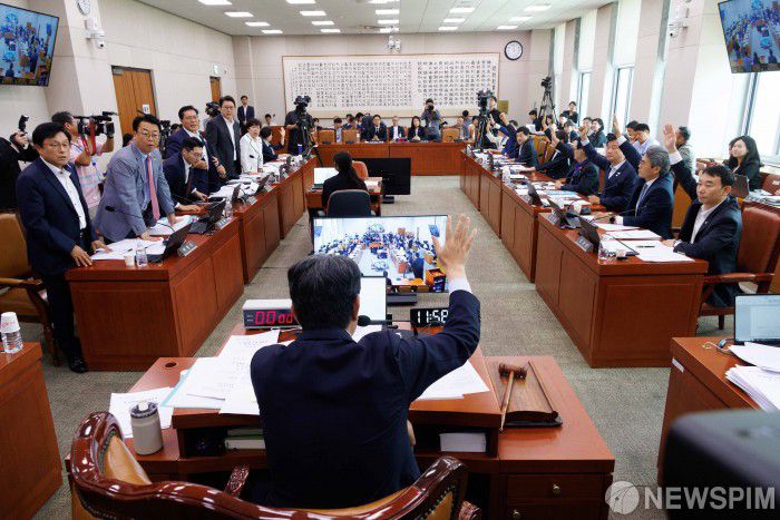 국회 법사위는 이날 전체회의에서 방송3법(방송문화진흥회법·방송법·한국교육방송공사법 일부개정법률안)과 노란봉투법(노동조합 및 노동관계조정법 일부개정법률안) 등에 대한 심의, 표결을 진행해 처리했다.