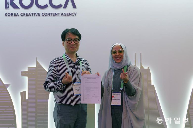 1일 문화체육관광부와 한국콘텐츠진흥원(콘진원)에 따르면 지난달 22일부터 24일까지 사흘간 사우디 수도 리야드에서 열린 ‘2025 K 콘텐츠 엑스포 in 사우디아라비아’에서 가원글로벌, 난센스, 썸씽스페셜, 캐릭터링크 등 4개 콘텐츠 업체가 쿠웨이트 애니메이션 제작사 엠비비전(MBVISION) 스튜디오스와 업무협약(MOU)을 체결했다. 영상 콘텐츠 제작사 망그로브는 사우디아라비아 제작사 엘리건트 미디어와 MOU를 맺었다.