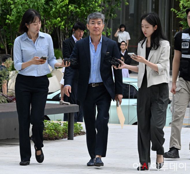 이종호 전 블랙펄인베스트 대표가 지난달 23일 서울 종로구 KT광화문빌딩에 마련된 김건희 특검 사무실에 재소환 되고 있다./송의주 기자