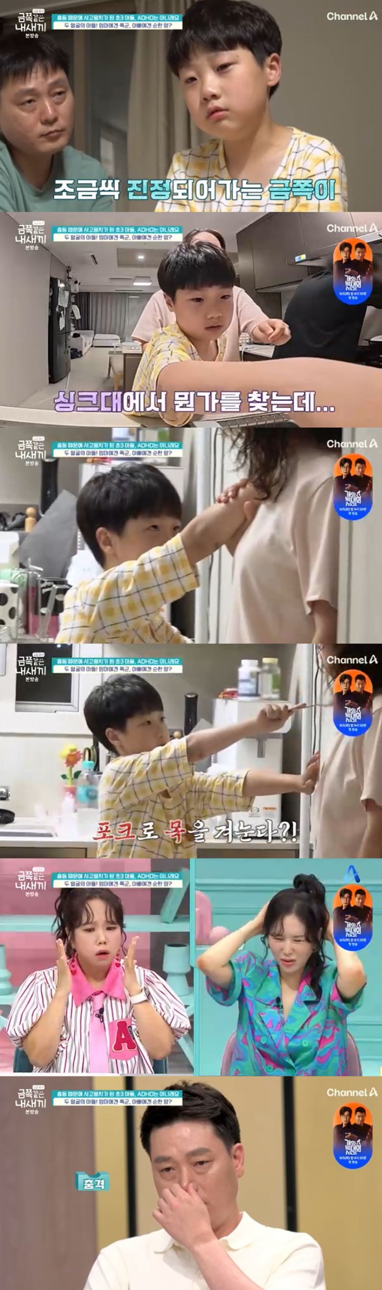 목을 겨눈 금쪽이에 충격을 표한 아빠. 수위 높은 행동에 장영란과 홍현희, 정형돈도 경악을 멈추지 못했다.
