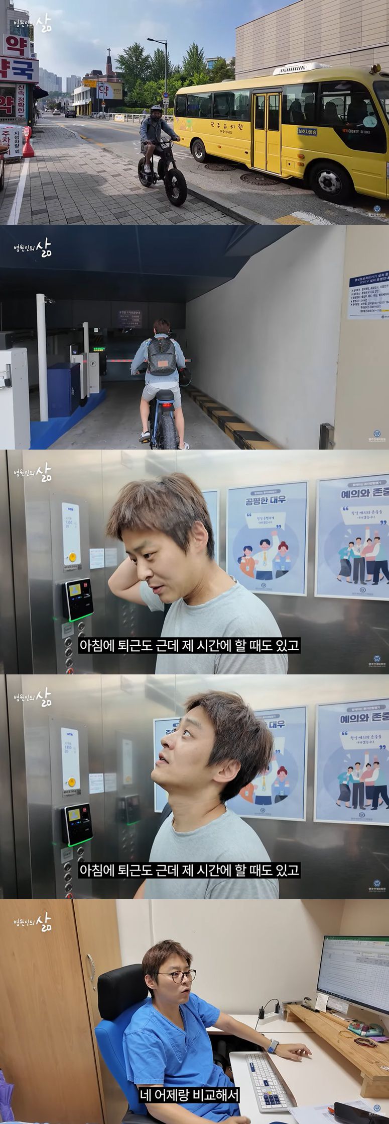 유 교수는 자전거 출근에 대해 "운동할 시간이 없어서 겸사겸사"라고 설명했다.