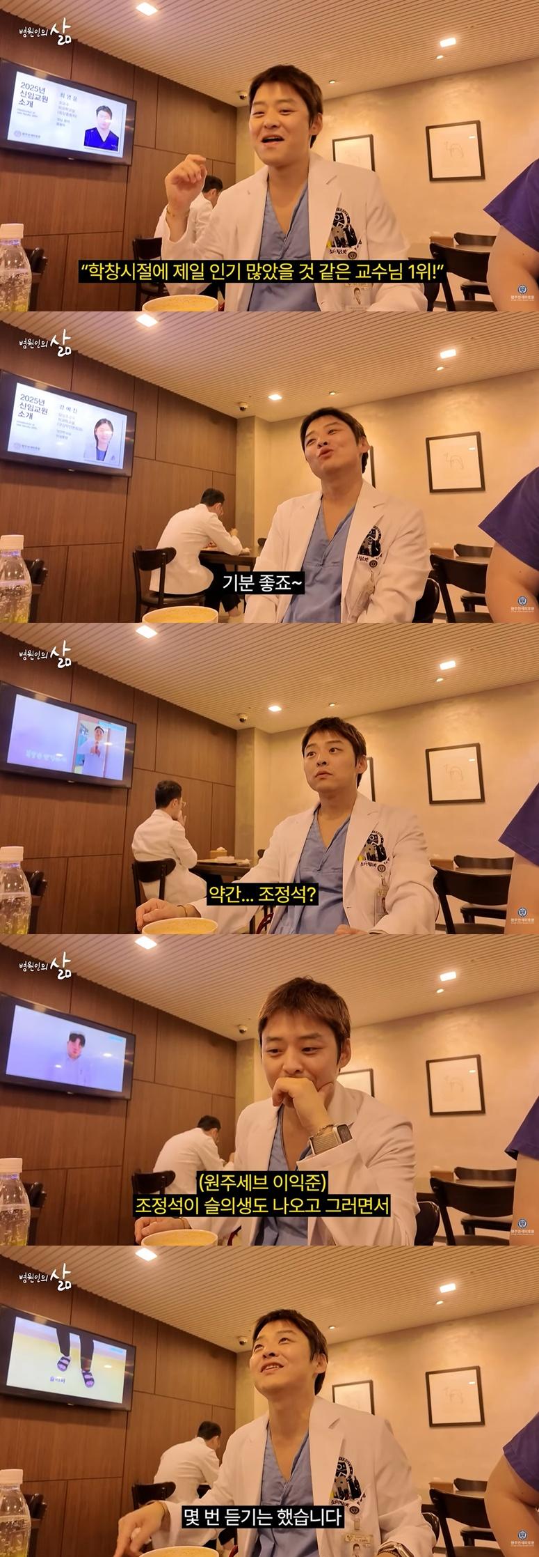 누리꾼들은 "썸네일 조정석이 페이크 다큐 컨셉 예능 찍은 줄", "이익준 현실 버전 같아", "어떻게 자전거 타고 출근하는 것까지 이익준", "현실판 이익준", "'유퀴즈' 뭐하나요. 현실판 이익준 교수님입니다!", "'슬기로운 의사생활' 실사판이네", "조정석이 'SNL' 찍은 줄 알았다" 등 뜨거운 반응을 보이고 있다.