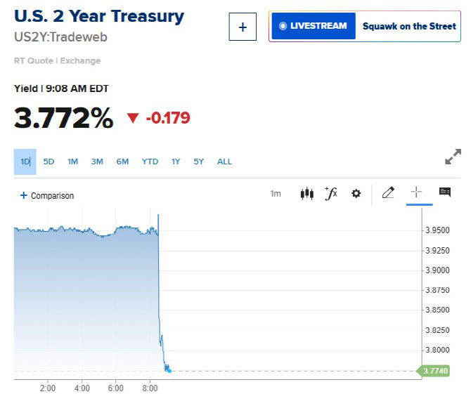9월 금리인하 가능성 60%이상 상향…2년물 18bp가량 급락