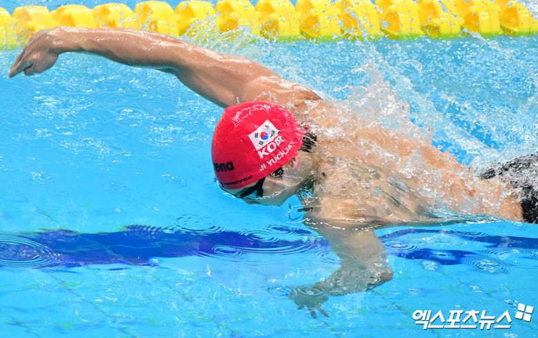 (엑스포츠뉴스 칼랑(싱가포르), 유준상 기자) '한국 수영의 스피드레이서' 지유찬(대구광역시청)이 경영 최단거리인 남자 자유형 50m에서 한국 최초로 세계수영선수권대회 결승에 오르는 역사를 썼다.