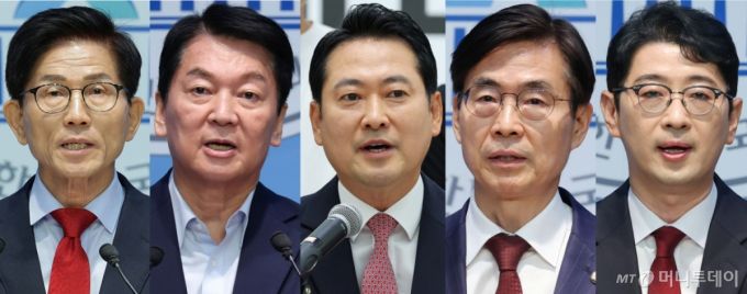 (서울=뉴스1) 유승관 기자 = 국민의힘 선거관리위원회는 8월 22일 치러질 전당대회의 예비경선에 당대표 후보 5인, 최고위원 후보 11인, 청년 최고위원 후보 4인이 진출한다고 1일 밝혔다. 왼쪽부터 가나다순으로 김문수, 안철수, 장동혁, 조경태, 주진우 당대표 후보. 2025.8.1/뉴스1 Copyright (C) 뉴스1. All rights reserved. 무단 전재 및 재배포, AI학습 이용 금지. /사진=(서울=뉴스1) 유승관 기자 |