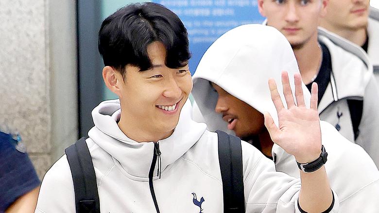▲ 토트넘 홋스퍼 손흥민이 1일 인천국제공항 제1터미널을 통해 입국하며 팬들에게 손을 흔들고 있다.