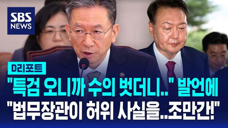 정 장관은 어제(1일) 국회 법제사법위원회에서 김건희 특검팀의 윤 전 대통령에 대한 체포영장 집행 과정을 설명하며 "(윤 전 대통령이) 반팔 상하의를 정상적으로 입고 있다가 특검팀이 체포영장 집행을 시도하자 수의를 벗었고 특검팀이 나가자 바로 입었다고 한다"고 말했습니다.