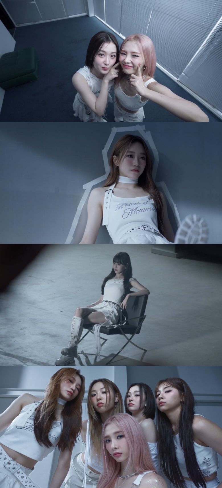 공개된 무드 필름에는 흥미로운 스토리텔링이 돋보여 콘셉트에 대한 궁금증을 높였다. 영상 속 아윤과 서빈은 감시카메라 아래 자유자재로 포즈를 취하는가 하면, 바쁘게 건물을 누비는 원채와 키리는 서로 부딪히며 예상치 못한 상황을 맞이하는 등 다양한 연출로 호기심을 더했다. 뒤이어 변화를 의식하고 자유롭게 움직이는 진율, 서하의 모습도 담겨 관심을 드높였다.