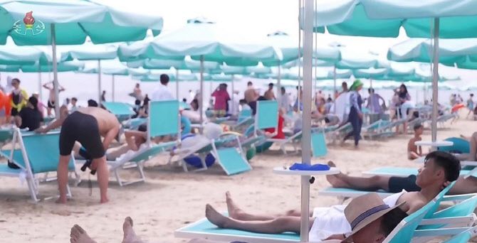 원산 갈마 지구 내국인 해변. 조선중앙TV/연합 |