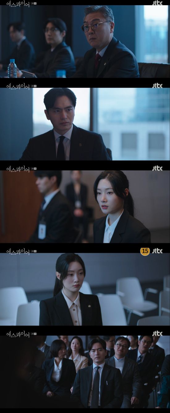 2일 첫 방송된 JTBC 새 토일드라마 '에스콰이어: 변호사를 꿈꾸는 변호사들'(이하 '에스콰이어') 1회에서는 강효민(정채연 분)이 윤석훈(이진욱)이 있는 송무팀에 들어간 모습이 그려졌다.