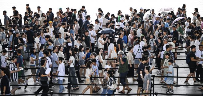 주말인 3일 서울 용산구 국립중앙박물관을 찾은 수많은 관람객들이 입장하기 위해 줄 서 있다. 국립중앙박물관에 따르면 지난 7월 1일부터 30일까지 국립중앙박물관을 찾은 관람객 수는 총 69만4천552명으로 지난해 같은 기간 대비 두 배가 넘는 수치다. 2025.8.3 이지훈 기자