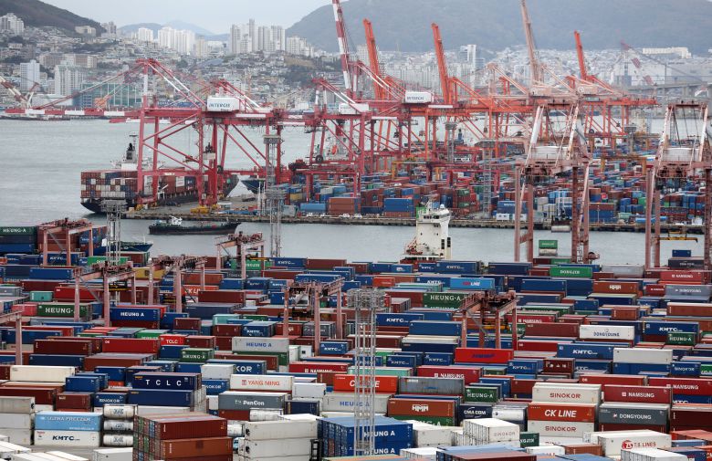 부산항 감만부두와 신선대부두에 컨테이너선 모습./뉴스1 |