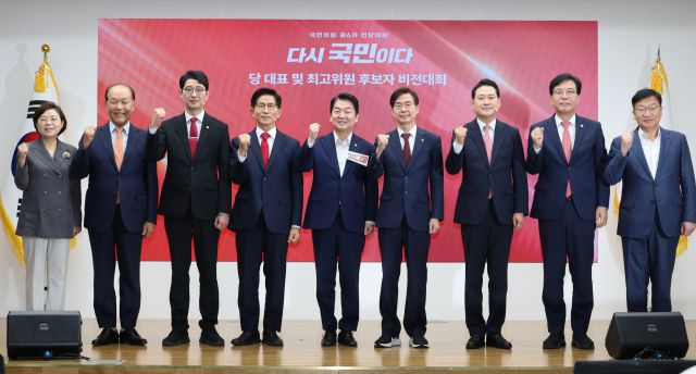 송 비상대책위원장은 이날 여의도 국민의힘 중앙당사에서 열린 ‘당 대표·최고위원 후보자’ 비전대회에 참석해 “국민이 바라는 당 혁신 방안을 놓고 치열한 토론을 하되 서로 아픈 상처를 소환하는 과거를 향한 경쟁보다 포용과 단합의 미래를 위한 경쟁이 되길 바란다”며 이같이 밝혔다. 이미 국민의힘을 탈당한 윤석열 전 대통령을 전당대회에 끌어들여 불필요한 격론을 벌이지 말라는 의미로 풀이된다.