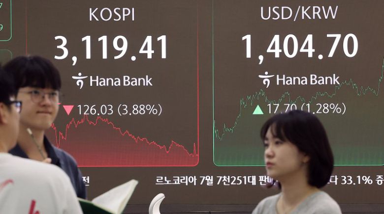 1일 오후 서울 중구 하나은행 딜링룸 전광판에 마감 시황이 나오고 있다. 이날 코스피 지수는 전 거래일 대비 126.03포인트(3.88%) 내린 3119.41로 장을 마쳤다. 외환시장에서 원·달러 환율은 전 거래일보다 17.70원 오른 1404.70원을 나타내고 있다. 사진=뉴스1 |
