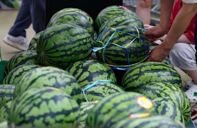 서울 시내 한 대형마트에서 소비자들이 수박을 고르고 있다. 폭염에 이은 폭염 영향으로 농산물 가격이 상승세를 보이고 있다. 2025.07.27 서울=뉴시스