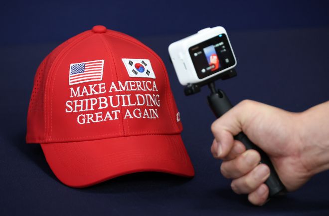 모자에는 ‘MAKE AMERICA SHIPBUILDING GREAT AGAIN’(미국 조선업을 위대하게)이라고 적혀있는데, 이는 도널드 트럼프 미국 대통령이 즐겨 쓰는 ‘MAGA’ 모자를 흉내 낸 것이다.