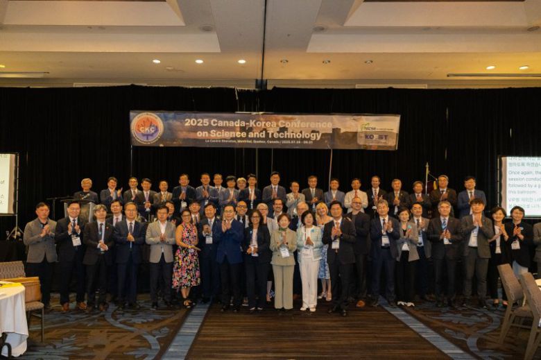 과학기술정보통신부는 캐나다 몬트리올에서 지난 1일까지 개최된 2025 한-캐나다 과학기술대회(CkC)에 참석해 재캐나다 한인과학자들과 소통하고 양국 과학기술 확대 방안을 논의했다고 3일 밝혔다. CkC 참석자들이 기념 촬영을 하고 있다. 과학기술정보통신부 제공. |
