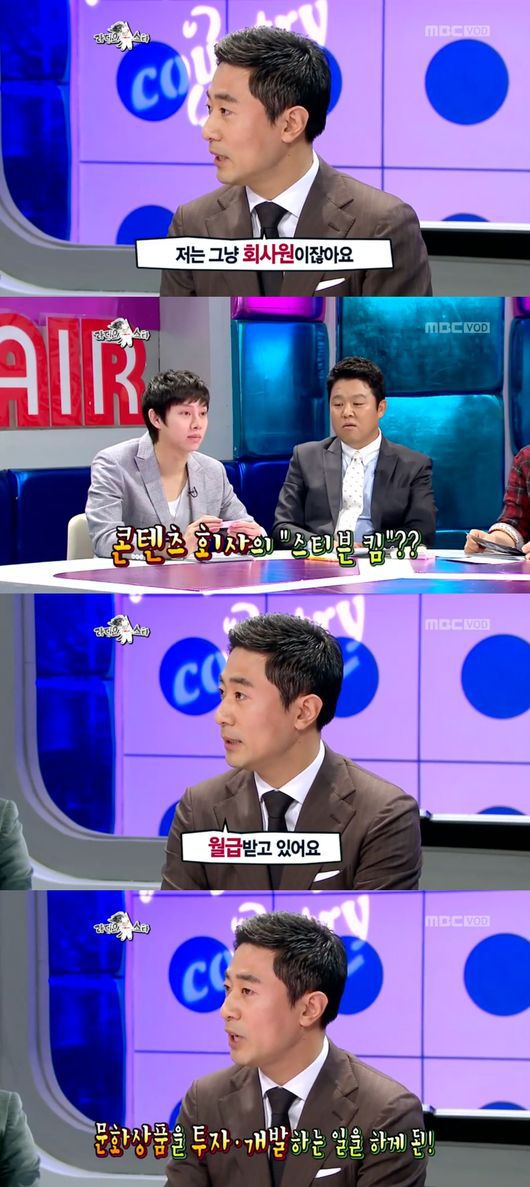 실제 김범수 전 아나운서는 지난 2011년 2월 16일과 23일에 방송된 MBC 예능 '라디오스타'에 신영일 전 KBS 아나운서, 김성주 전 MBC 아나운서와 함께 게스트로 출연하며 문화콘텐츠사업 회사의 회사원이라고 스스로를 소개한 바 있다. 당시 그는 '라디오스타' MC들과 출연자들에게 자신의 회사에서 진행한 문화 전시라며 샤갈전 책자를 나눠주는 등 적극적인 영업에 나섰던 터다.