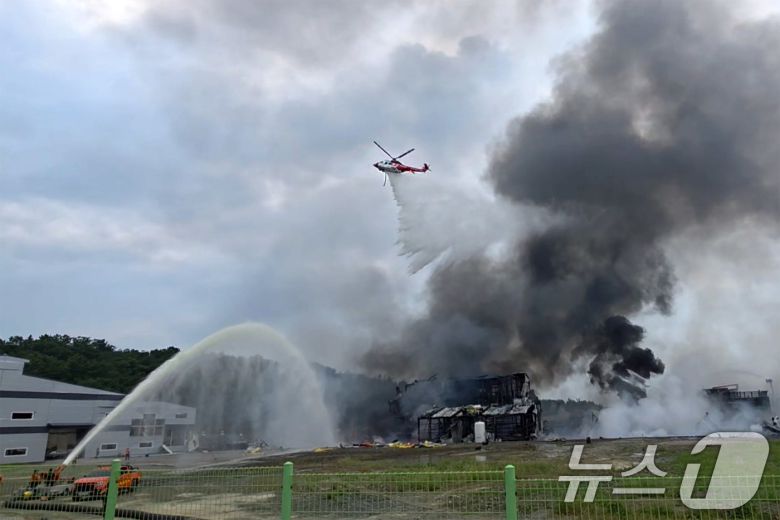 (영천=뉴스1) 최창호 기자 = 3일 오후 경북 영천시 금호읍에 있는 화학물질 취급 공장에서불이 나 소방 당국이 대응 1단계를 발령하고 진화 중이다. (경북소방본부 제공. 재판매 및 DB 금지) 2025.8.3/뉴스1choi119@news1.krCopyright ⓒ 뉴스1. All rights reserved. 무단 전재 및 재배포, AI학습 이용 금지.이 기사의 카테고리는 언론사의 분류를 따릅니다.0공유하기