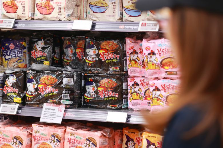 서울의 한 대형마트에 진열된 불닭볶음면. [연합] |