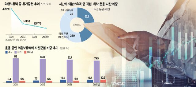 한은이 해외 주식을 직접 운용하려는 또 다른 이유는 외환보유액의 관리를 더욱 강화해야 하기 때문이라는 해석이 나온다. 외환보유액 중 유가증권 비중은 2021년 말 4216억 달러(약 585조 원)에서 2022년 3697억 달러(약 513조 원)로 내려간 뒤 올 6월 기준 3585억 달러(약 498조 원)로 500조 원을 밑돌고 있다. 해외 자산운용사는 대규모 자금을 리파이낸싱(자본재조정)하면서 잦은 수수료를 요구하고 있기 때문에 투자 수익을 갉아먹는 원인이 된다. 한은은 수익률을 올리기 위해 2011년 5%대에 불과했던 주식 비중을 2021년부터 10%까지 높였다.