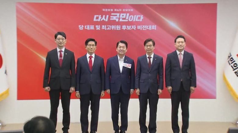 오는 22일 국민의힘의 새로운 당 대표를 뽑기 위한 전당대회를 앞두고 출마자 5명이 한자리에 모였습니다.