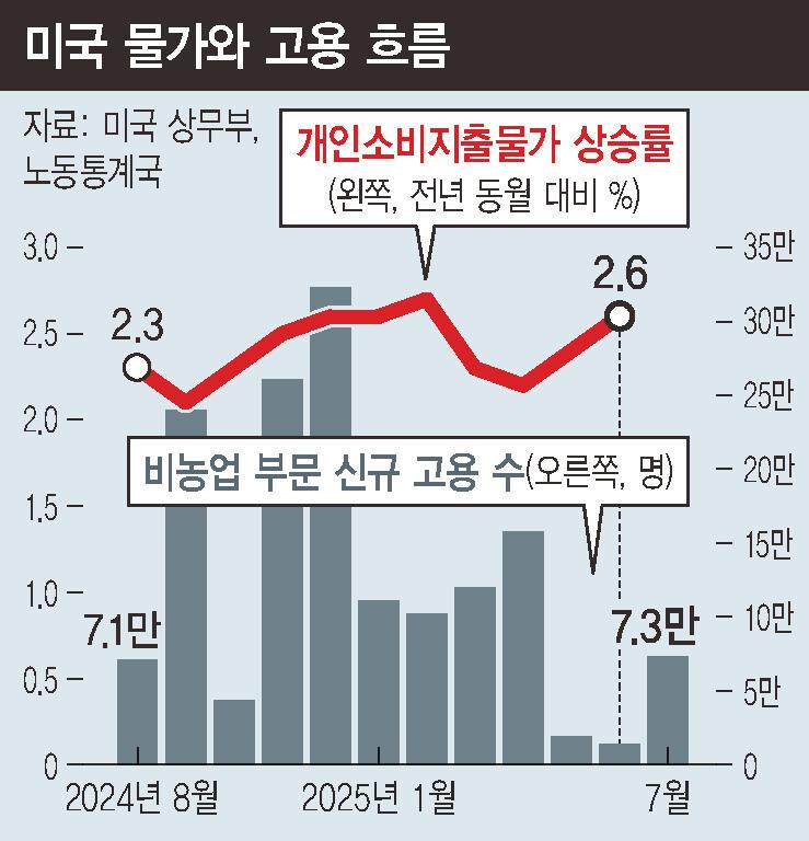 지난달 31일(현지시각) 미국 상무부가 발표한 개인소비지출 물가와 1일 노동통계국이 발표한 5∼7월 비농업부문 신규 고용자 수는 미국 경제에 트럼프 관세의 악영향이 현실화하고 있음을 보여줬다. 미국뿐 아니라 유럽 증시의 주가가 큰 폭으로 떨어졌고, 일본 닛케이225지수 선물도 2% 넘게 하락할 정도로 투자자들은 민감하게 반응했다. 시카고상품거래소 그룹이 집계하는 페드워치(Fedwatch)는 연방준비제도가 9월에 기준금리를 내린다는 쪽으로 급격히 기울었다.