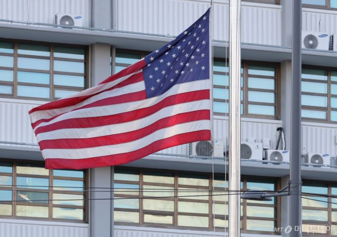 서울 종로구 주한미국대사관에 게양된 미국 국기. / 사진=뉴스1 |