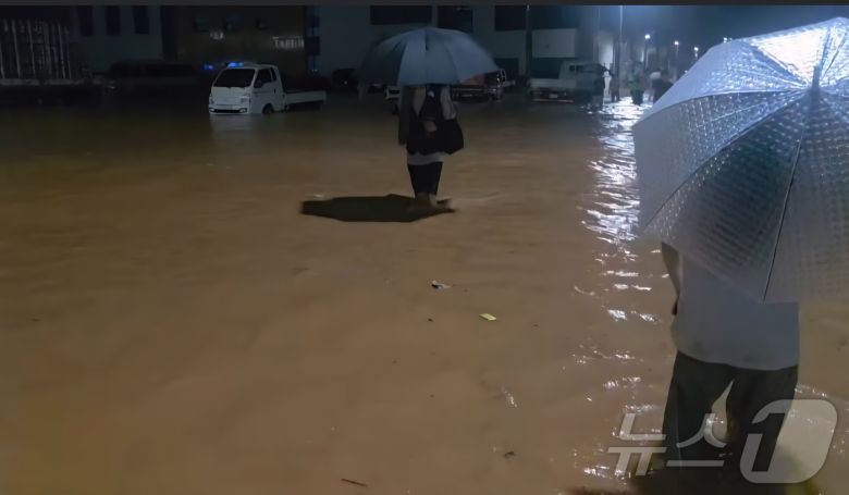 최대 288㎜의 폭우가 내린 3일 전남 무안의 한 도로에서 시민들이 우산을 쓰고 물바다를 지나고 있다.(나광국 전남도의원 SNS. 재배포 및 DB 금지) 2025.8.3/뉴스1 |
