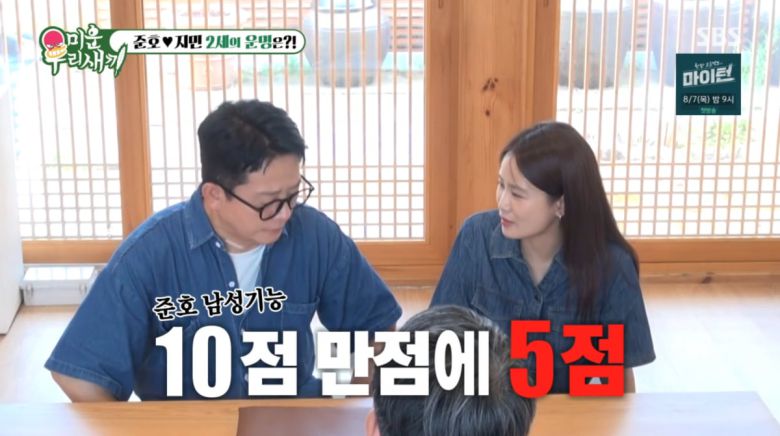 김지민은 "임신이 잘될 거라"는 희소식을 들었지만, 올해 49세인 김준호는 "간이 피로해서 남성 기능이 좀 떨어질 수 있다. 10점 만점에 5점이다. 아기를 가지고 싶은데 체력적으로 힘들 것"이라는 이야기를 들었다.