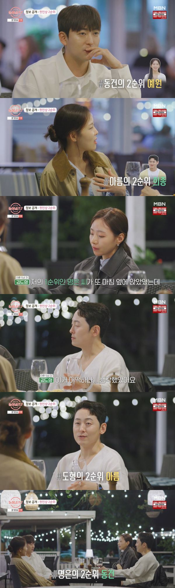도형은 첫인상 1순위인 명은 앞에서 2순위를 선뜻 말하지 못했다. 그는 망설임 끝에 "내 2순위는 아름이었다"고 밝혔다. 같은 현장에 1, 2순위가 모두 모인 상황에 MC들이 술렁였다. 반면 명은은 "2순위는 동건이었다"고 말했다.