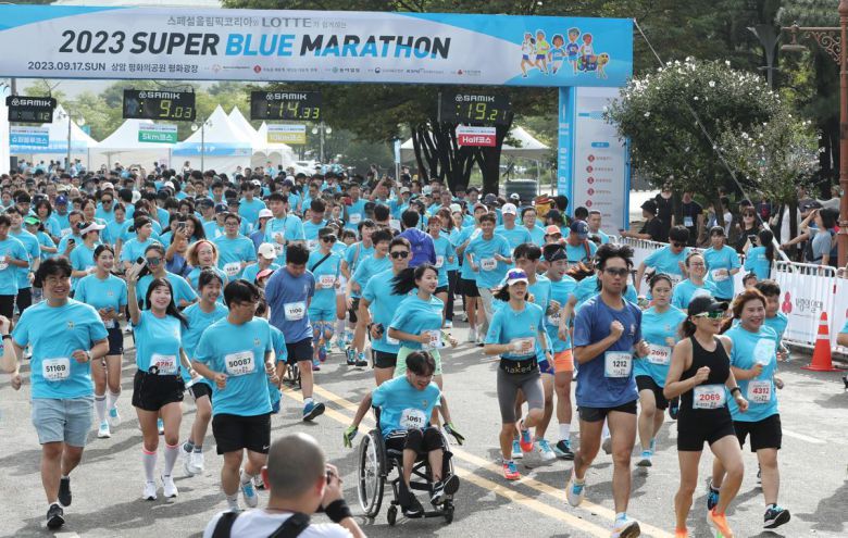 슈퍼블루마라톤은 스페셜올림픽코리아(SOK)와 롯데그룹이 공동 주최하며 동아일보사가 주관한다. 또 문화체육관광부와 국민체육진흥공단은 후원, 사회복지공동모금회는 지원을 맡는다. 정양석 SOK 회장은 “장애 인식 개선에 앞장서는 8000명의 목소리는 아름다운 울림이 될 것이다. 많은 참가를 바란다”고 말했다.